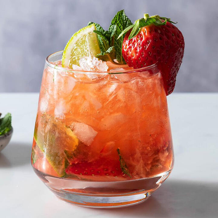 Fresh strawberries and mint muddled with light rum and lime juice, served over ice and topped with club soda and a mint garnish