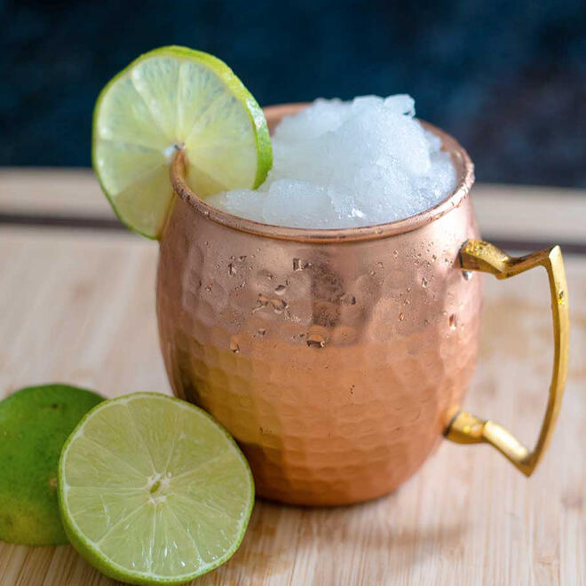 Vodka, fresh lime juice, and ginger beer, served over ice with a lime wedge garnish