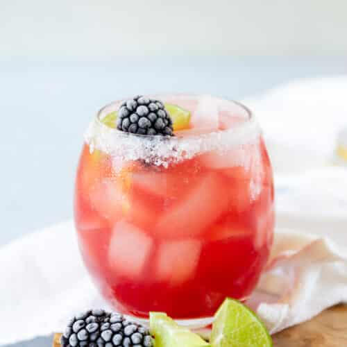 Light rum and blackberry liqueur mixed with lime and pineapple juice served chilled over muddled blackberries with luster dust and a pineapple blackberry garnish